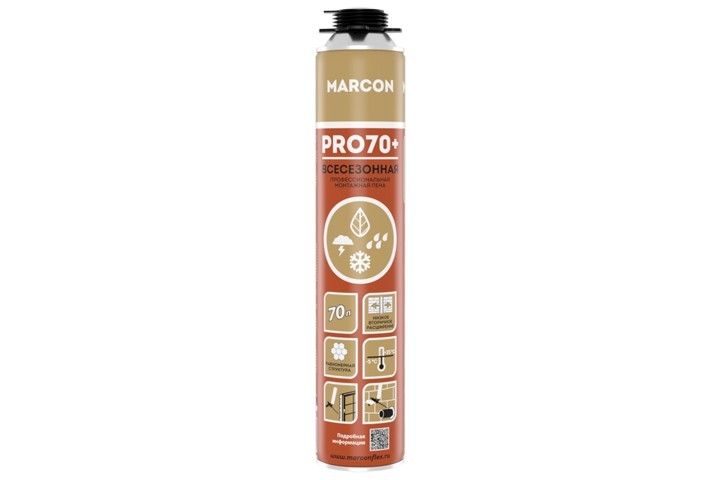 Профессиональная монтажная пена MARCON pro 70+ предназначена для использования в любое время года. Она эффективно применяется для установки и герметизации оконных и дверных конструкций, а также для заполнения и уплотнения различных отверстий, щелей и пустот. С ее помощью можно фиксировать и изолировать трубы, а также обеспечивать надежность инженерных и технических систем. Кроме того, пену используют для монтажа и герметизации стеновых панелей, откосов и подоконников. Она также подходит для герметизации, тепло- и звукоизоляции помещений и каркасных конструкций.